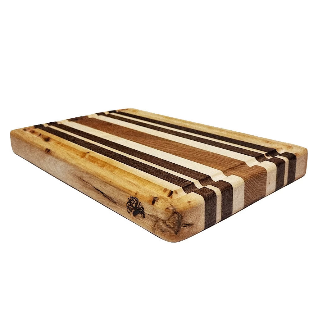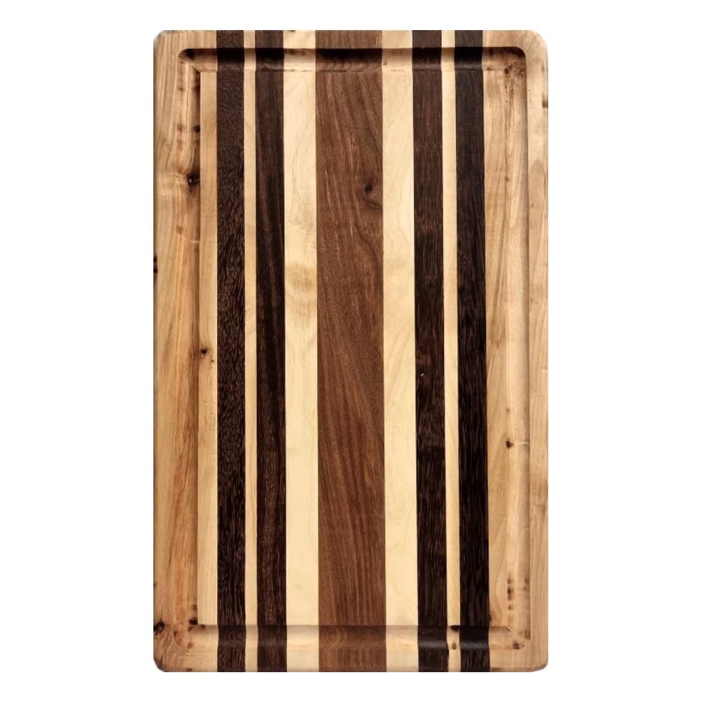 Träknölen – Skärbräda Randen är en skärbräda där färgkontrasterna kommer till sin rätt. Tillverkas av blandade lämpliga träslag i olika former som körsbär, alm, teak och lönn. Impregnerad med lukt o smakfri mineralolja (paraffin olja) och slutligen en blandning av bivax och olja
