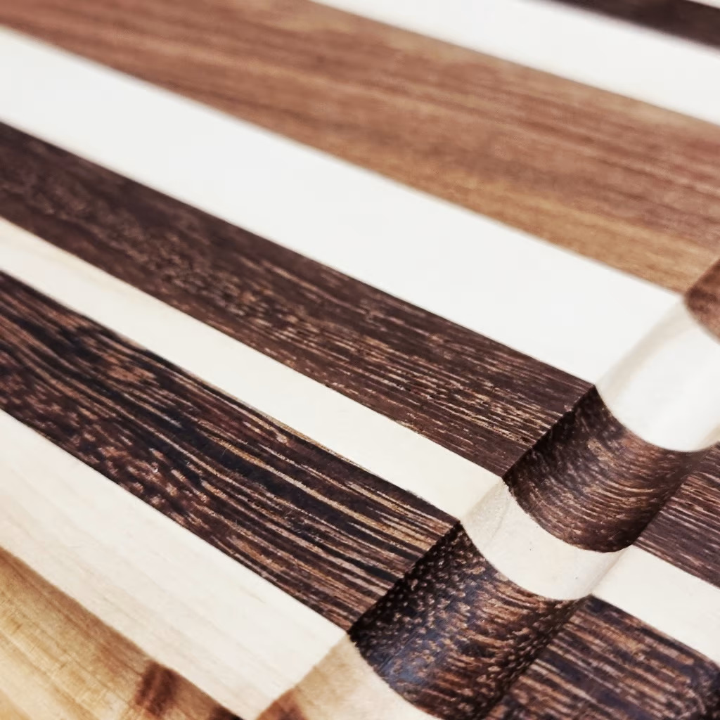 Generellt tillverkas skärbrädor av såväl ändträ som stavlimmat trä. Vi arbetar med olika träsorter för att skapa såväl färg som mönster.